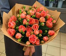 Яркий, пестрый, солнечный и ароматный букет из разноцветных кустовых роз. Кустовые розы всегда делают букет очень пышным, а когда они просто перевязаны лентой, это смотрится особенно привлекательно, так как ничто не может скрыть красоты цветов. Прекрасные розы-достойный подарок для любой женщины и девушки. Повод также моет быть любой. Ну и, конечно, можно подарить охапку розочек и просто так, без повода.